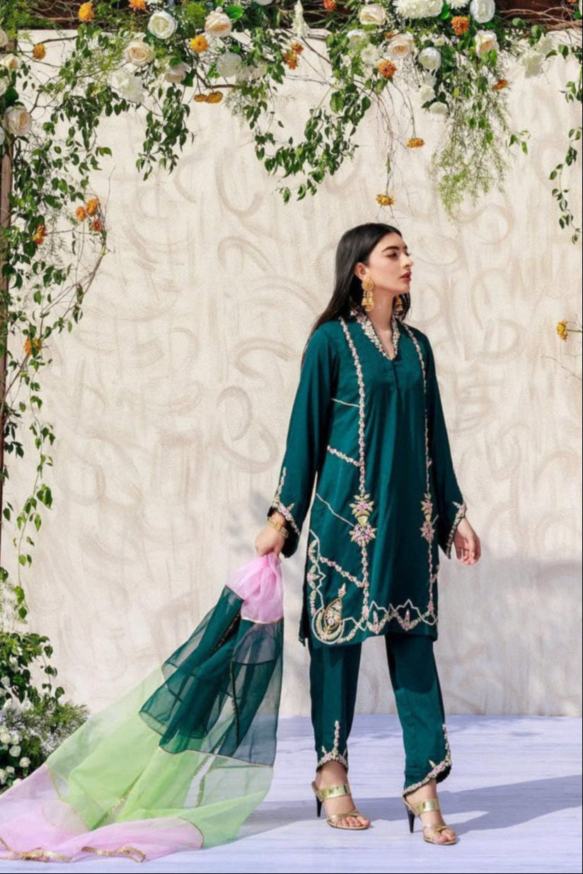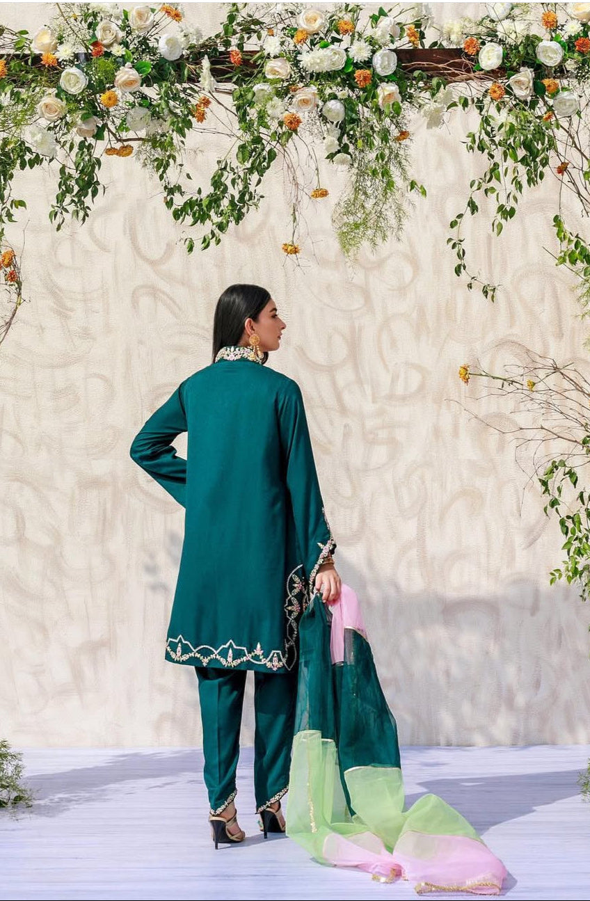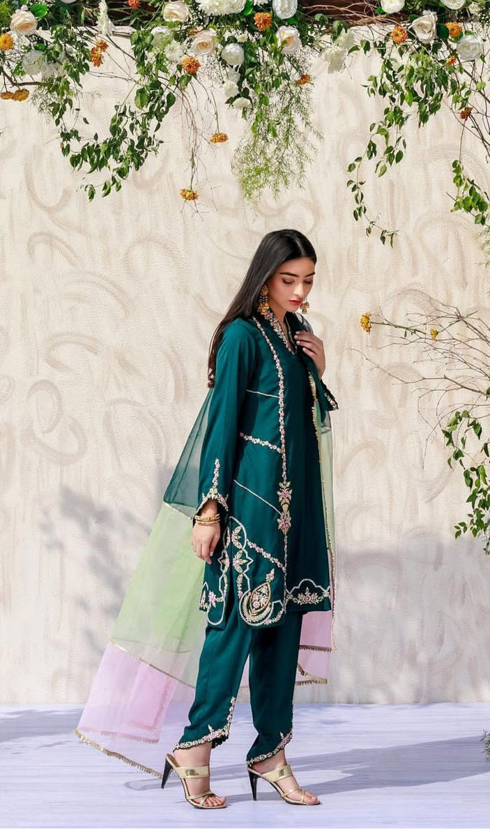 Fabric: Organza (shirt & dupatta), raw silk (trouser)